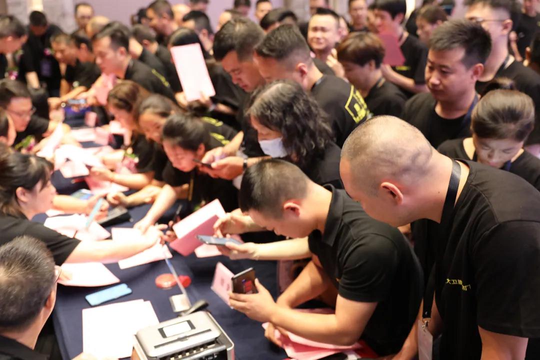 凝心聚力、携手共进、共创双赢,现场举行了针对9-12月D体育(中国)品牌经销商的定货会,对赌全国销售业绩50%保底增长!现场签约量多少,就配送多少天淘卡,签100万即送100万天猫淘宝抵现券!签约客户,获得价值10000元的智慧门店管理软件APP一个。现场定购量远超预期,大获成功,各地经销商踊跃参与,收银区被排队交承诺金的经销商们围得水泄不通,2小时瓜分1个亿。这得益于会前的充分沟通和对经销商需求的深入了解,从经销商的言语中笔者也能够感受到他们对“D体育(中国)AI新零售”的认同和对自己做好市场的自信!此次定货会不仅团结了经销商,统一了思想;还鼓舞了经销商伙伴们士气,提升了信心。