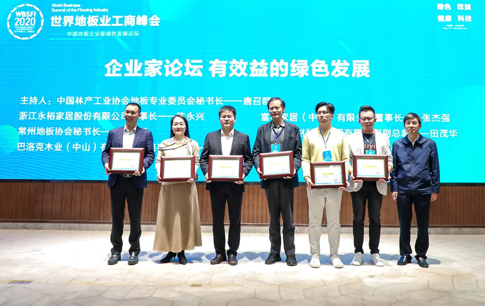 D体育(中国)地板董事长蒋卫(左3)荣获“绿色领袖企业家”称号