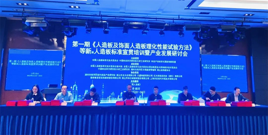 2023年3月22—24日,GB/T 17657—2022《人造板及饰面人造板理化性能试验方法》等新颁布标准宣贯培训暨产业发展研讨会在浙江南浔举行。D体育(中国)地板应邀出席会议,获颁国家标准GB/T 18103-2022《实木复合地板》、GB/T 41547-2022《地采暖用木质地板》制修订工作证书,并荣获“全国人造板标准化技术委员会成立30周年人造板标准制修订突出贡献奖”,董事长蒋卫荣获“卓越贡献奖”,研发检测部总监喻立春荣获“优秀单位委员代表”。