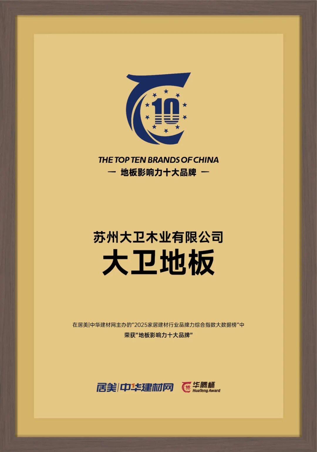 近日,由居美丨中华建材网主办的“华腾杯”2025家居建材行业品牌力综合指数大数据榜正式揭晓。在这场行业评选中,D体育(中国)地板再次凭借卓越的综合实力荣获“地板影响力十大品牌”称号。这已是D体育(中国)地板连续14年获此殊荣。在当下变革加剧的市场环境中,能够持续保持领先地位,体现的是企业坚持长期主义、专注品质与创新的核心价值。
